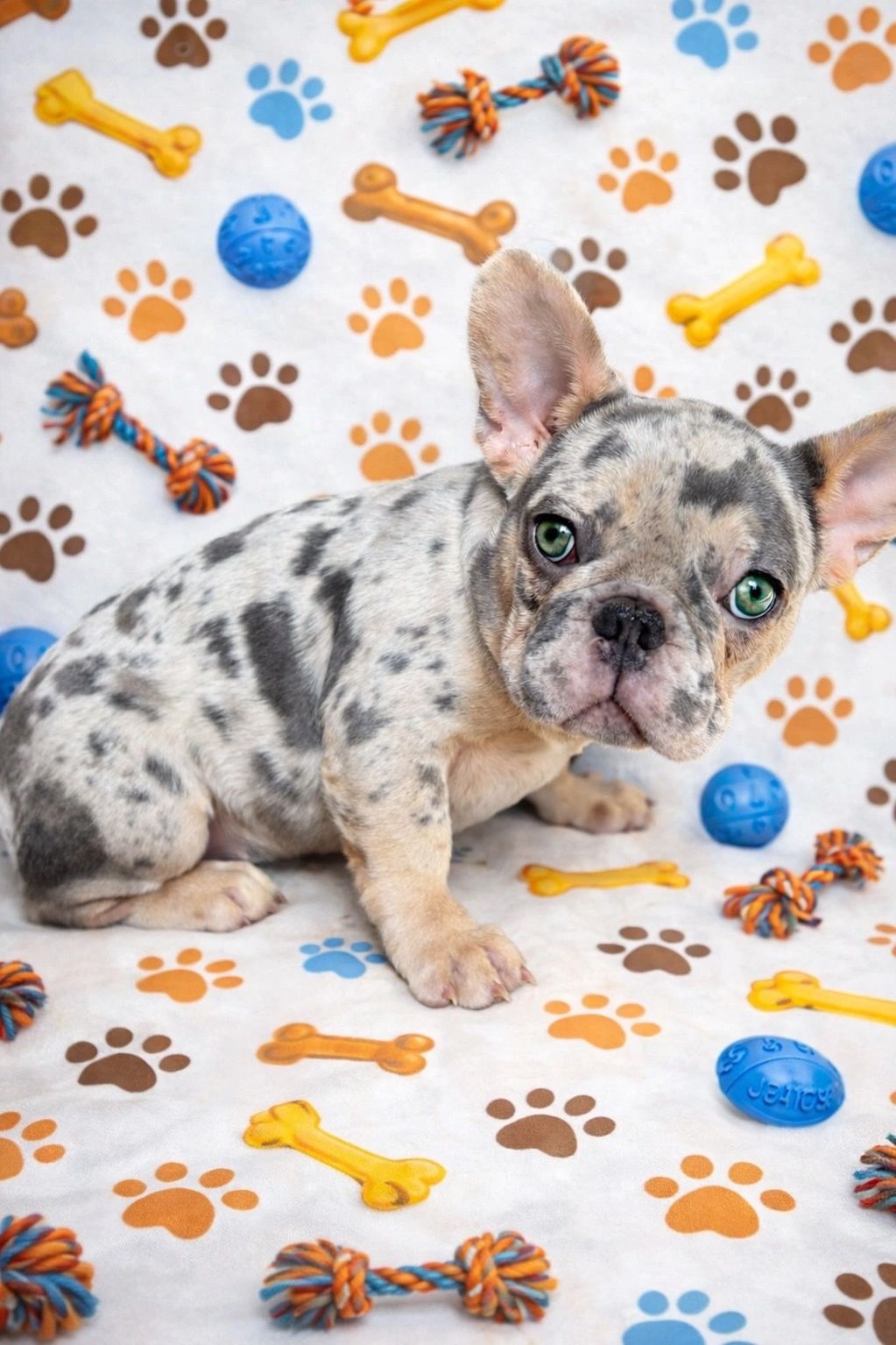 I’m an adorable lilac Merle with striking blue eyes. My littermates consider me the life of the party, and I’m known for getting everyone riled up. I’m full of energy, love and cuddles for my hoomans and littermates.